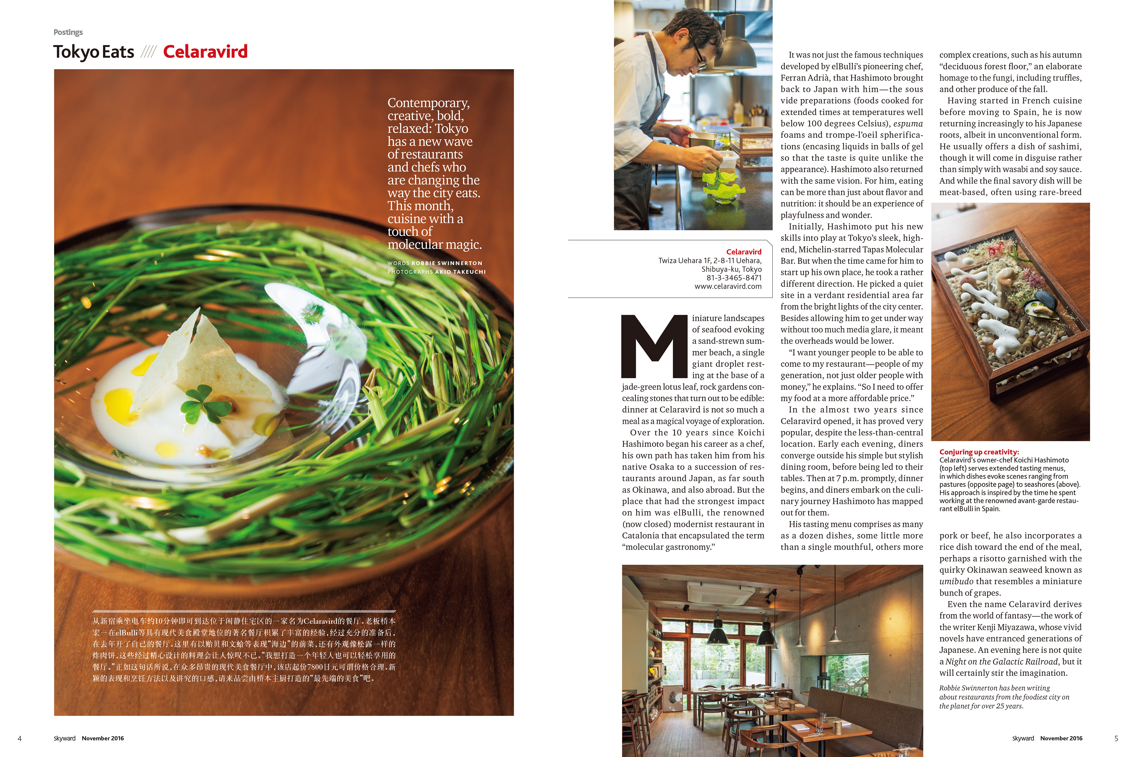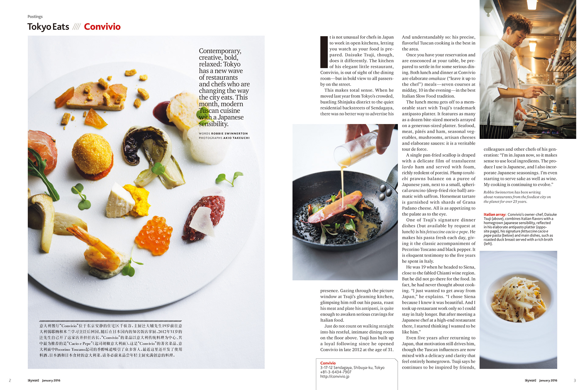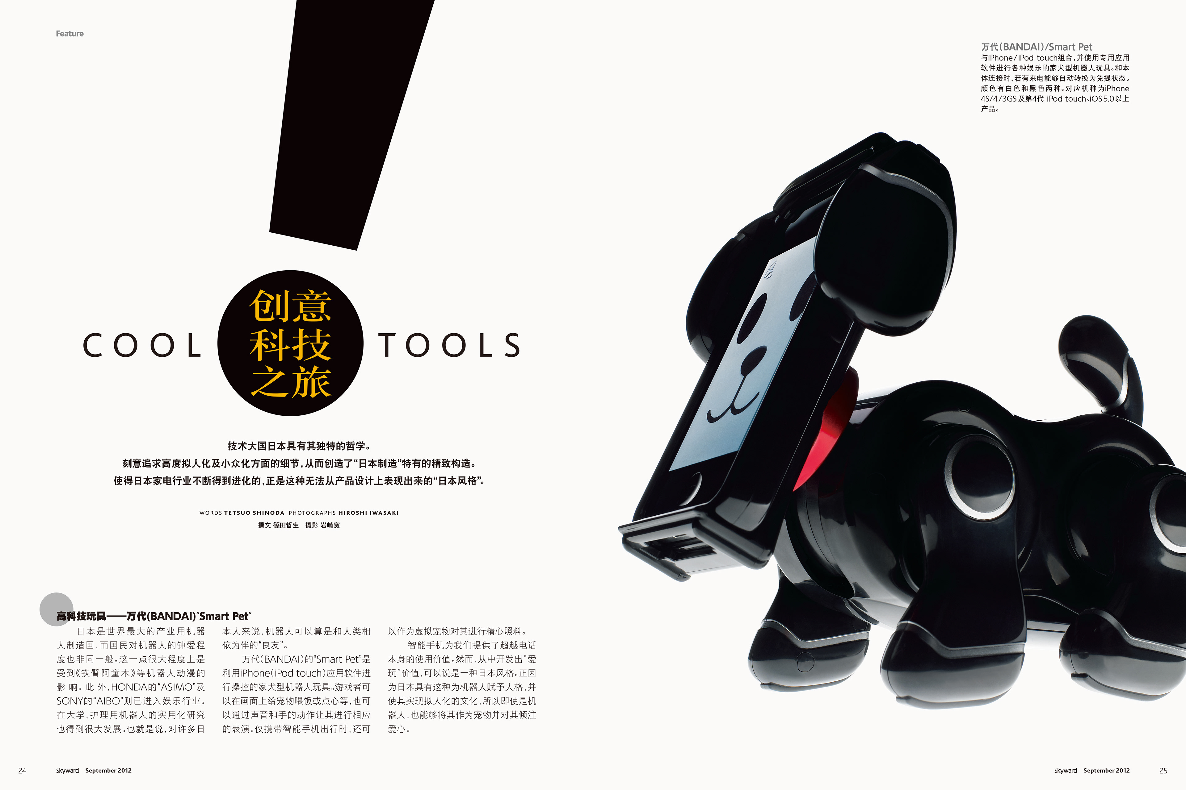 JAL国際線機内誌「SKYWARD」のリデザインにおいて、アートディレクションとデザインを8年間担当しました。機内での旅時間は、異国の文化や世界観を印象づける大切な入口です。さまざまなジャンルにおける「日本の今」を外国人の視点から捉え直し、知的好奇心を満たすビジュアルに反映させました。さまざまなデザイン手法を試みた結果、広告売上に伴う増ページにつながり、米エディトリアルデザイン協会(SPD53)から評価いただきました。